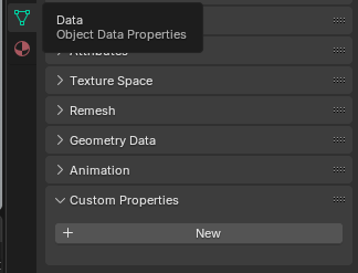 To add a collision to a mesh, assign a custom property. Select the object, go to Data -> Custom Properties, and click New: